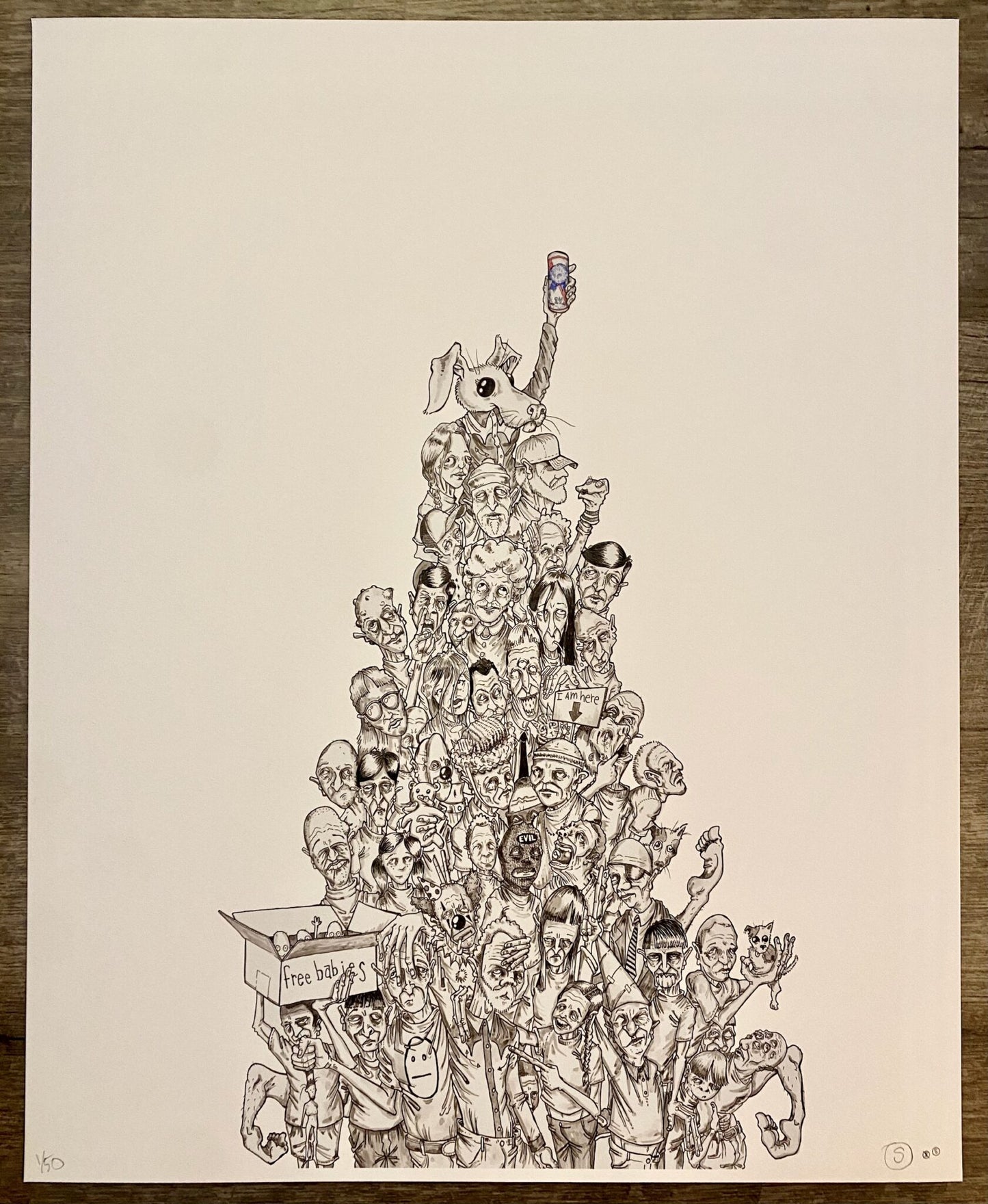 For the first second time in the existence of the All Hail The Black Market web project, I'm cross pollinating between it and Drunkingham Art Services. This archival reproduction was created in Oakland by Candela Fine Art Printing of a drawing that took me a real long time to finish.