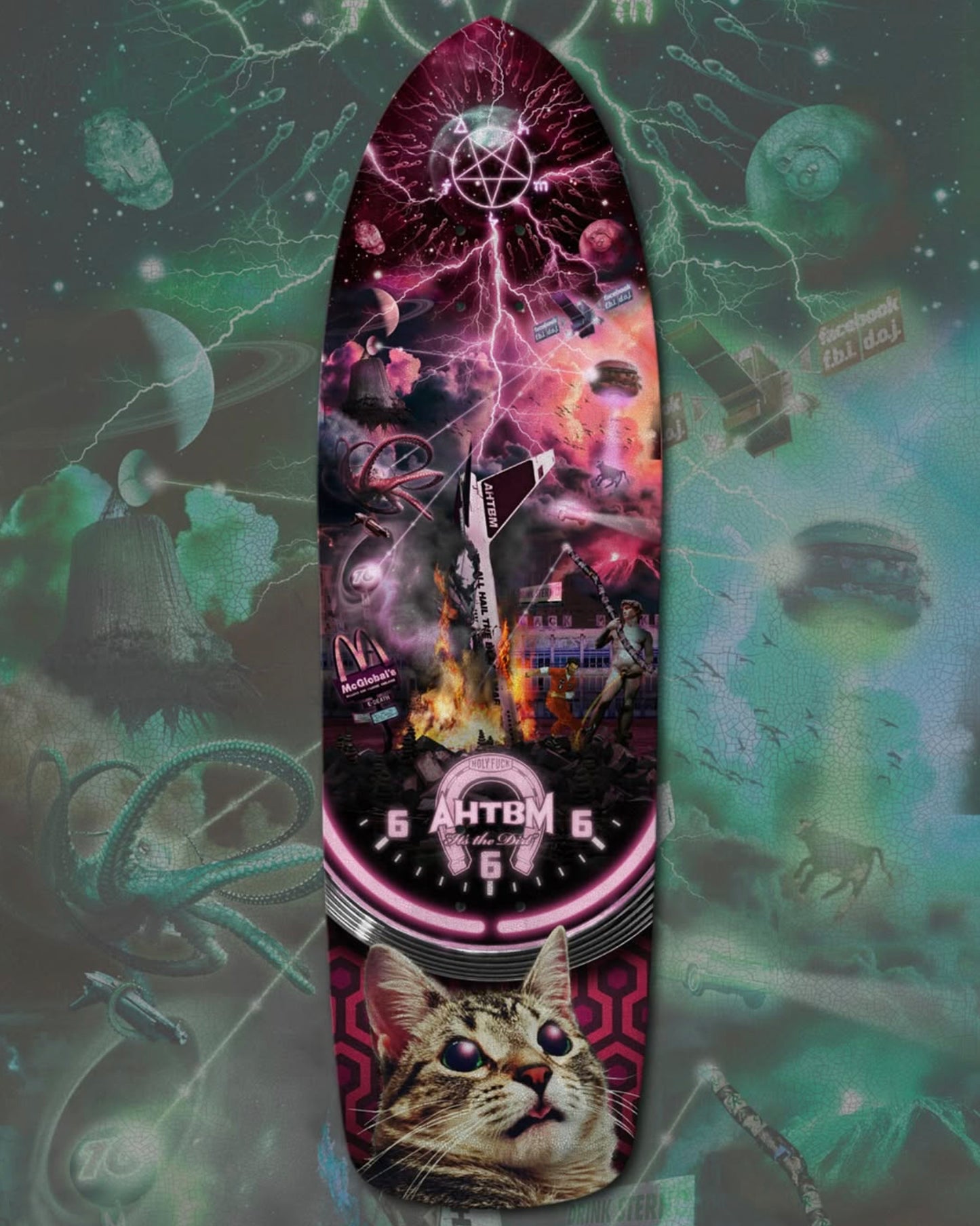 With AHTBM's sixth deck release, I'm proud to bring you a new shape, and impossibly prophetic graphics from none other than the one and only enigma, BLKPRJKT himself.