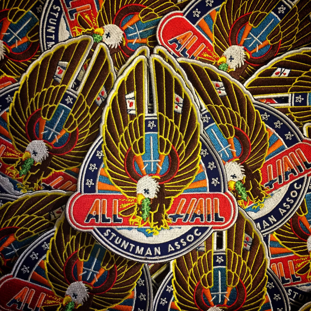 Are you not the kind to kiss and tell, but have you been seen with Farrah? Second to that, is it also true you hire your body out for pay? A hey hey. Well, would you lookie here. A damned fine new patch created by his hairy chestness, Snakehawk his own bad self, the new 4"x 5" All Hail The Black Market Stunt Association patch is the finest adornment you could want when being on fire with Sally Field, or going fast with a girl named Bo.